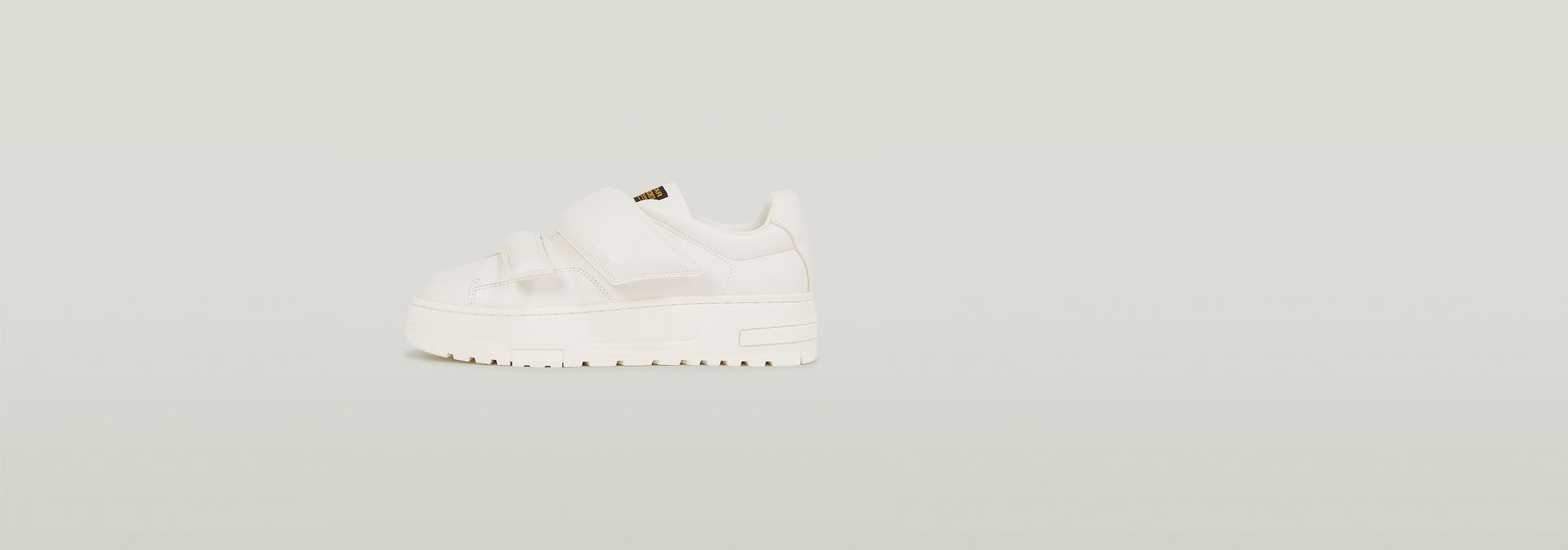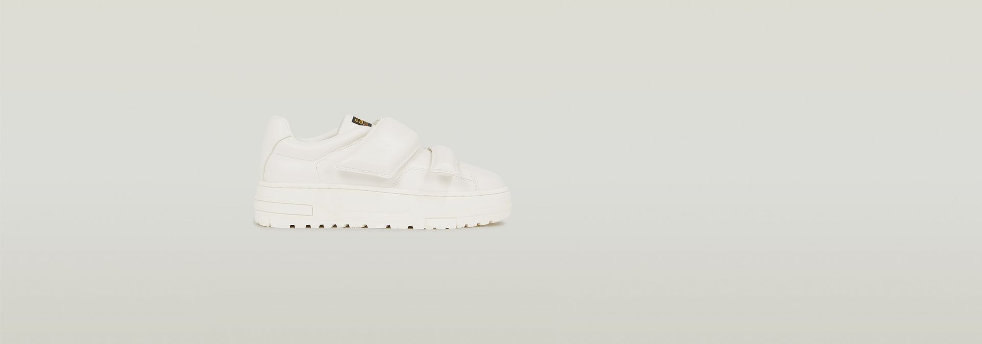 La bamba de cuero Lhana II Velcro tiene un corte bajo y correas 3D con cierre de velcro debajo. La suela gruesa tiene un acabado irregular.