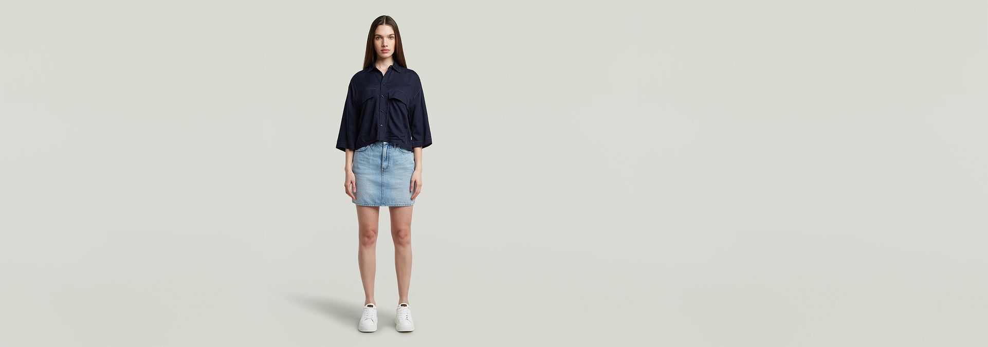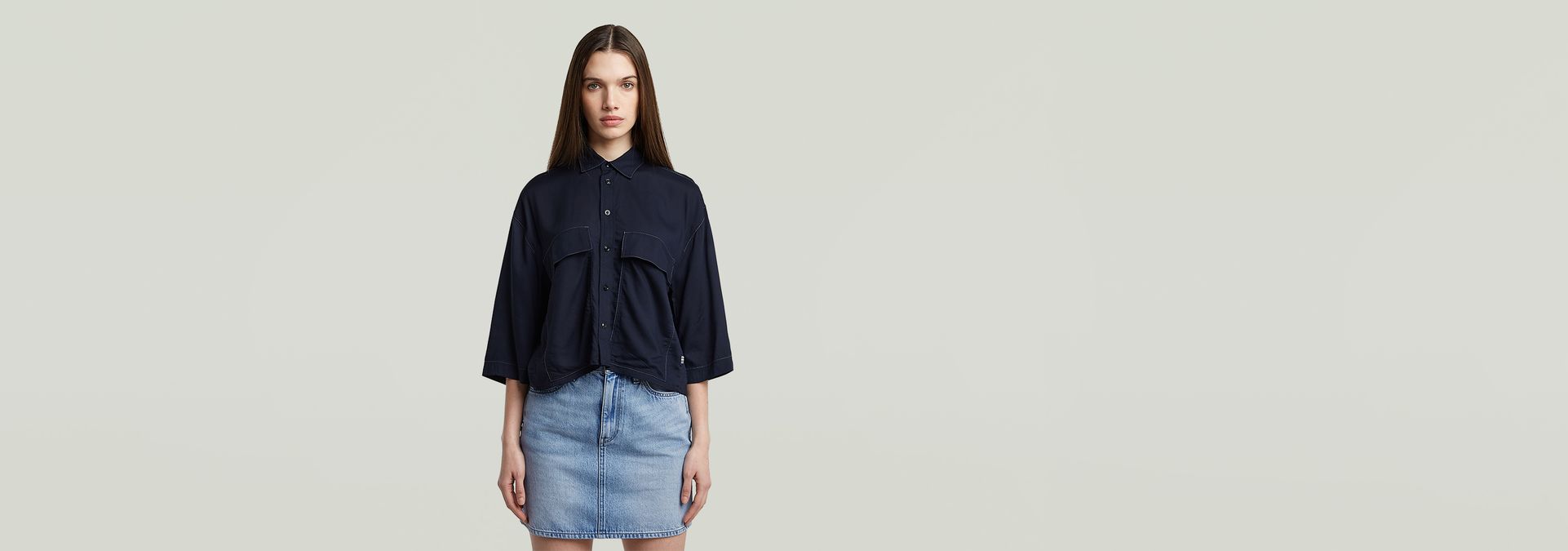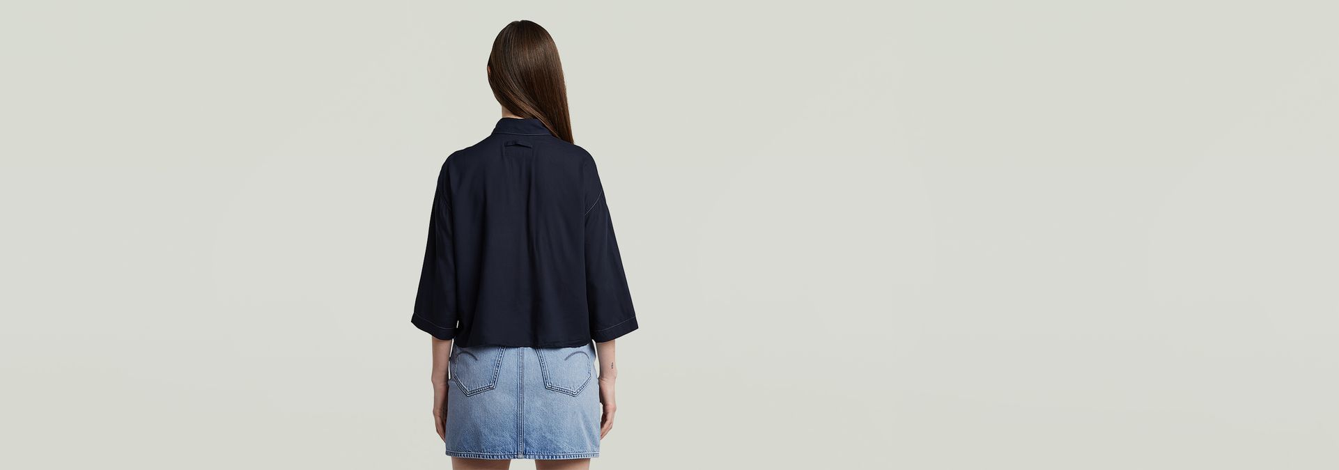 La camisa Boxy tiene un largo acortado y una silueta holgada y relajada. Por delante, lleva unos bolsillos profundos con solapa. El cierre de botones de esta camisa luce un solo botón a presión en el extremo.