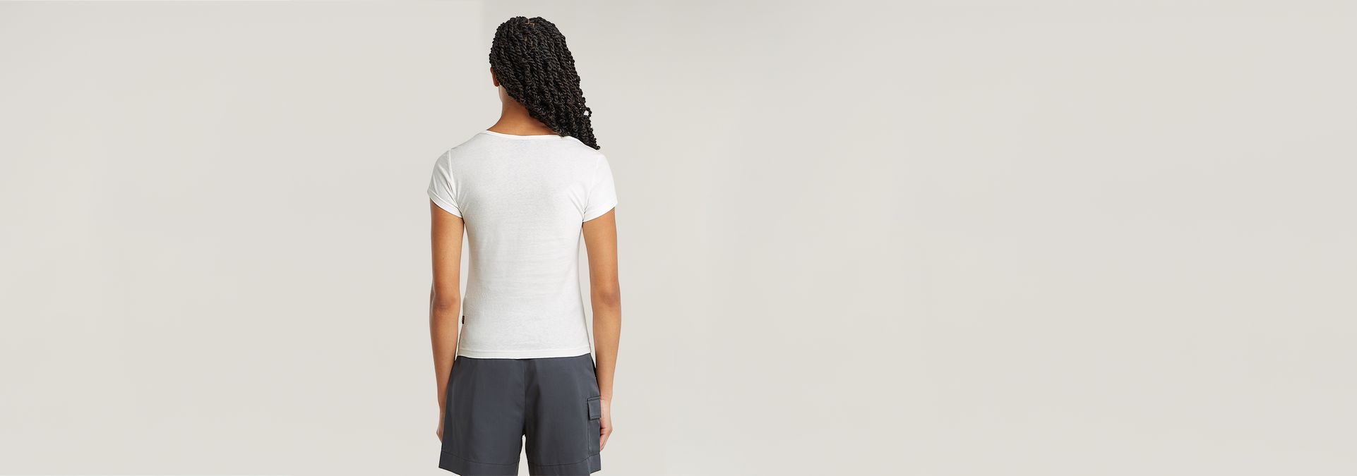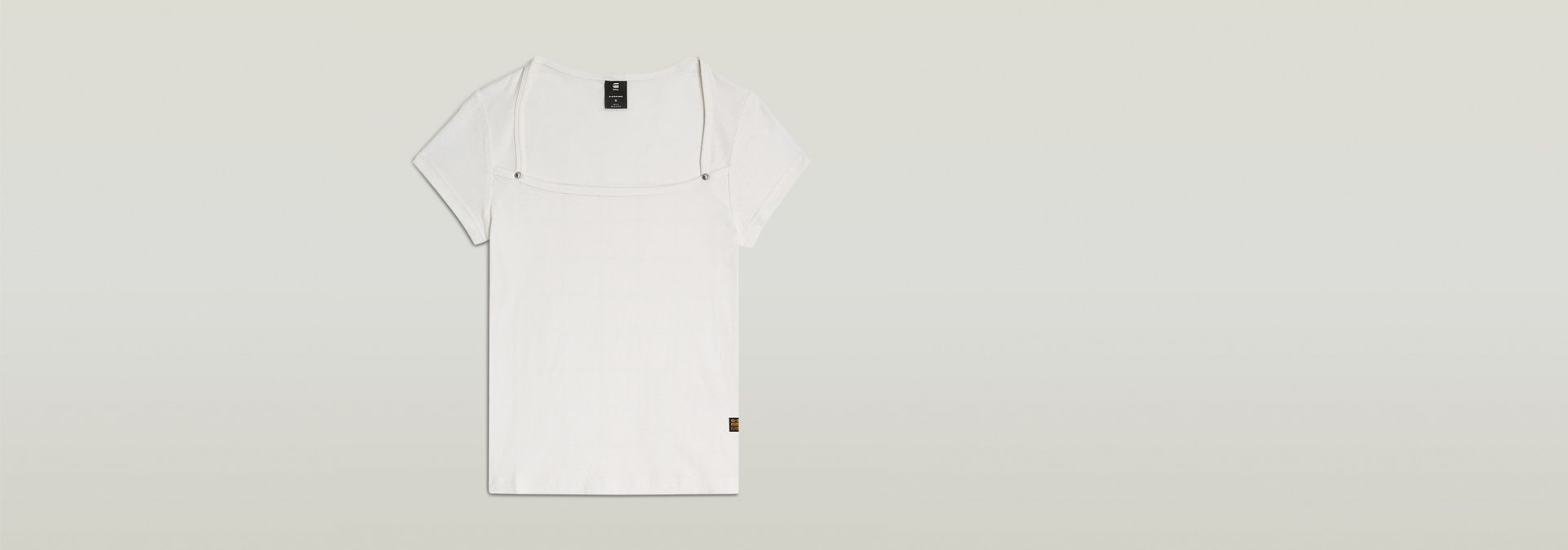 La camiseta Sweet Heart tiene un diseño de corte ajustado y mangas casquillo. El escote es más bajo y se corta en línea recta. Un ribete fino aporta un toque característico.