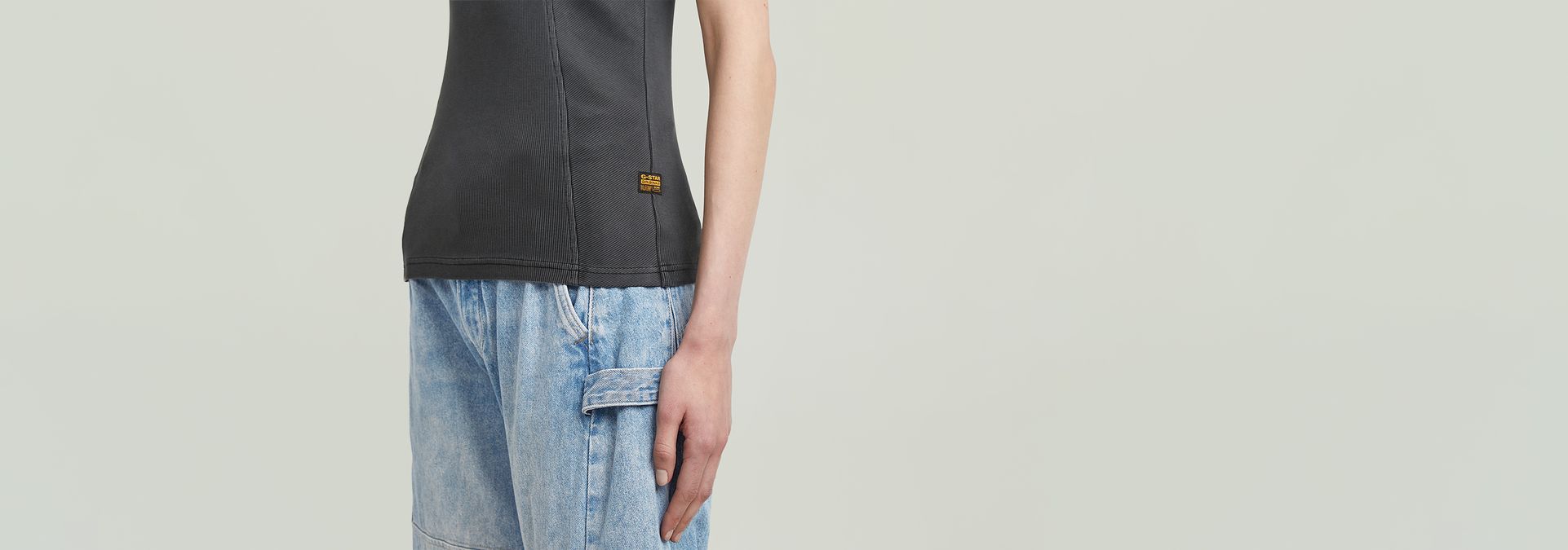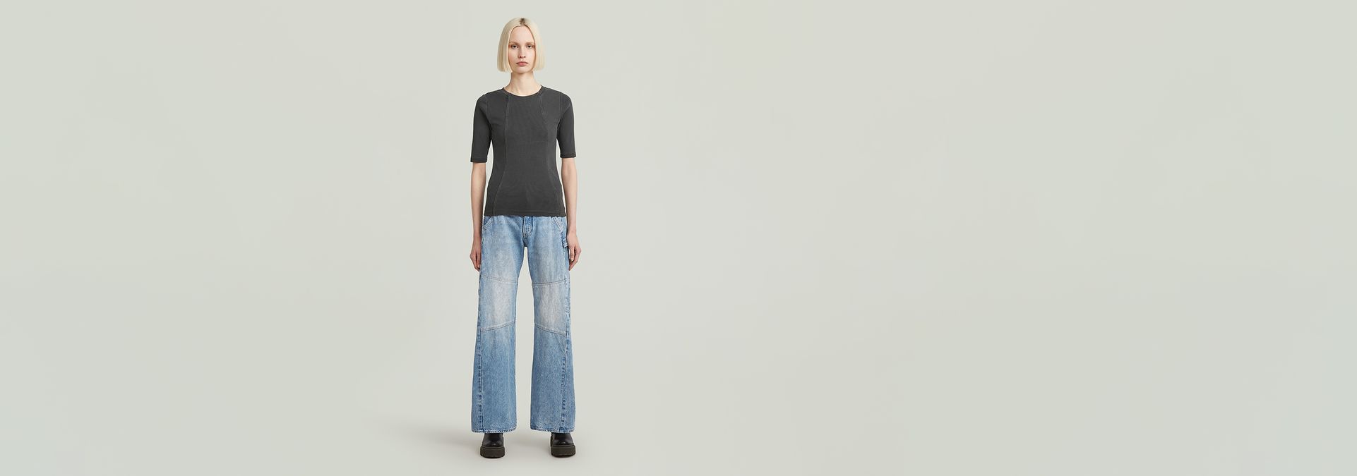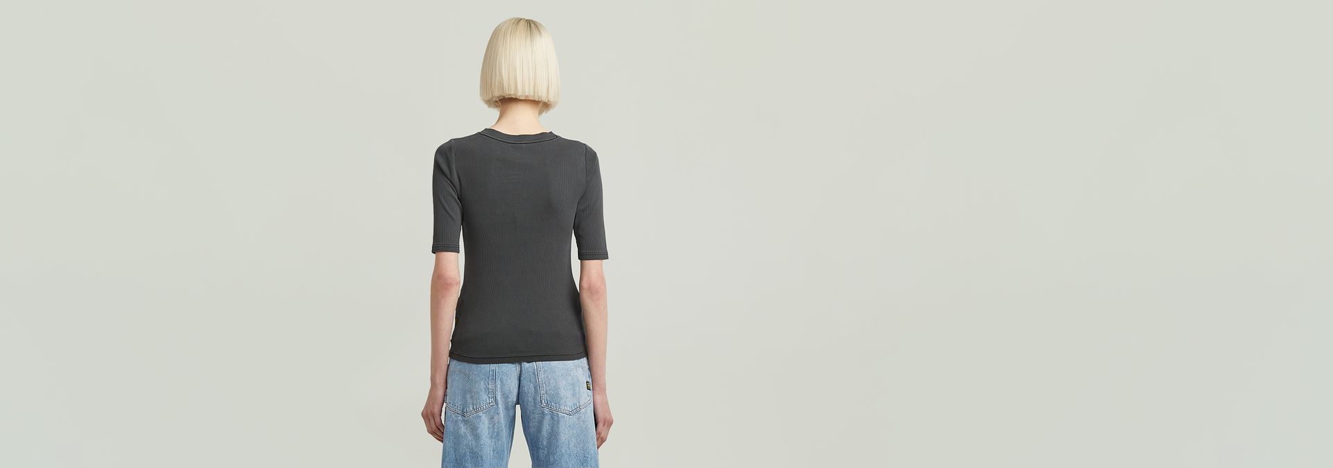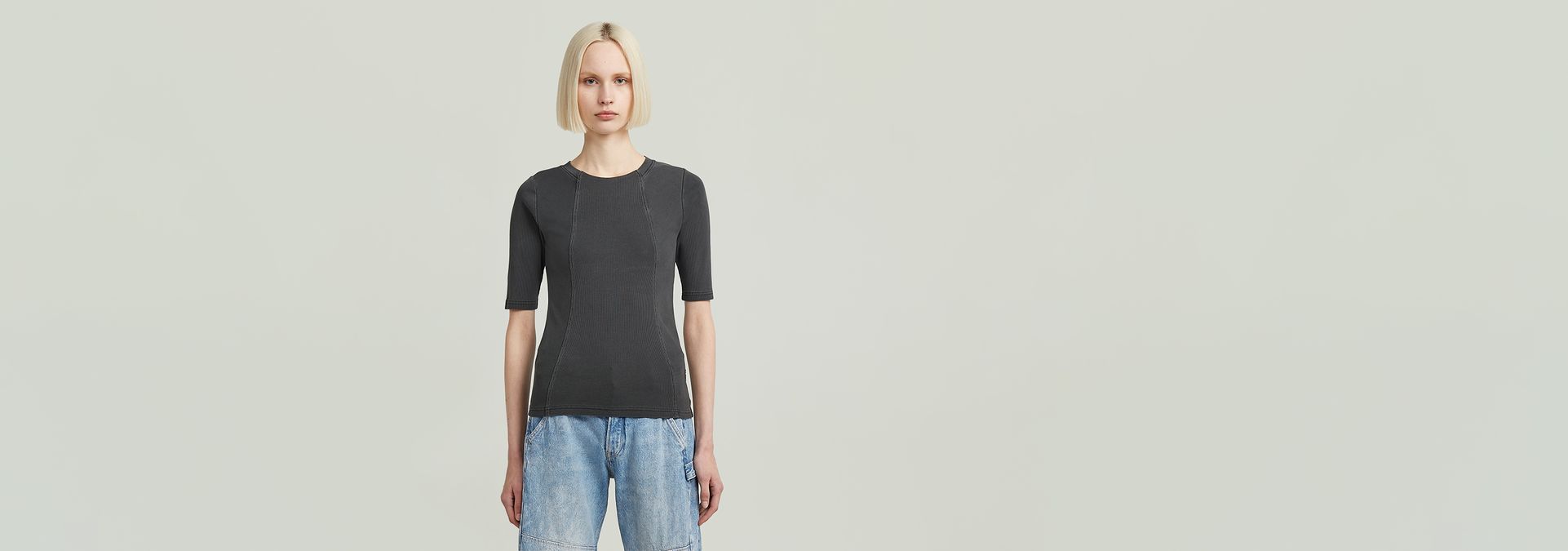 La camiseta Washed A-Line Slim Ribbed luce un corte ajustado con cuello redondo y medias mangas.