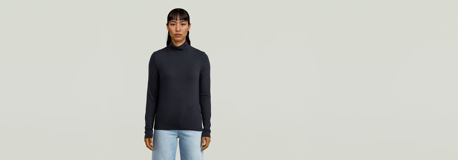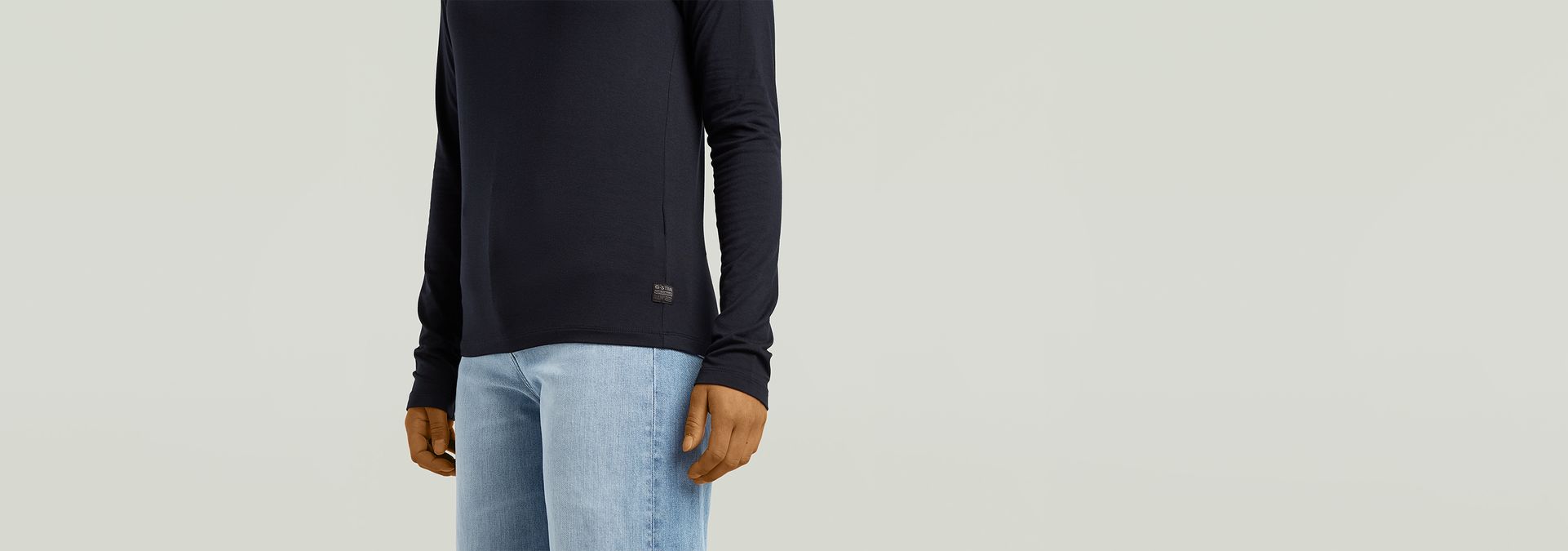 La camiseta Regular Mock de manga larga tiene cuello redondo clásico.