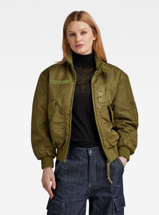 La chaqueta Bomber Nylon está diseñada con un corte extragrande y cierre de cremallera con tirador tejido. Luce un cuello alzado de canalé, rematado con una lengüeta y un botón. Además, esta se puede plegar hacia atrás cuando no se use y fijarla a un lado. Esta amplia cazadora de aviador luce un diseño totalmente forrado con un suave acolchado. También tiene bolsillos de solapa con botón en la cintura. Incorpora un bolsillo con cremallera y compartimentos adicionales para bolígrafos en la parte alta de una de las mangas. El detalle de cinta tejida con ojales y el gráfico bordado aportan un extra de carácter.
