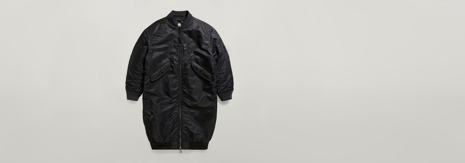La cazadora Bomber Long luce un diseño de largo ampliado. Incorpora una cremallera bidireccional. Esta cazadora de aviador lleva bolsillos con solapa y botón a presión, y un bolsillo en la parte superior de la manga con cremallera y compartimentos para llevar un bolígrafo. Incluye dos bolsillos más en el interior, con botones a presión que garantizan un cierre fiable. El forro acolchado y los bordes acanalados aportan comodidad a la prenda.