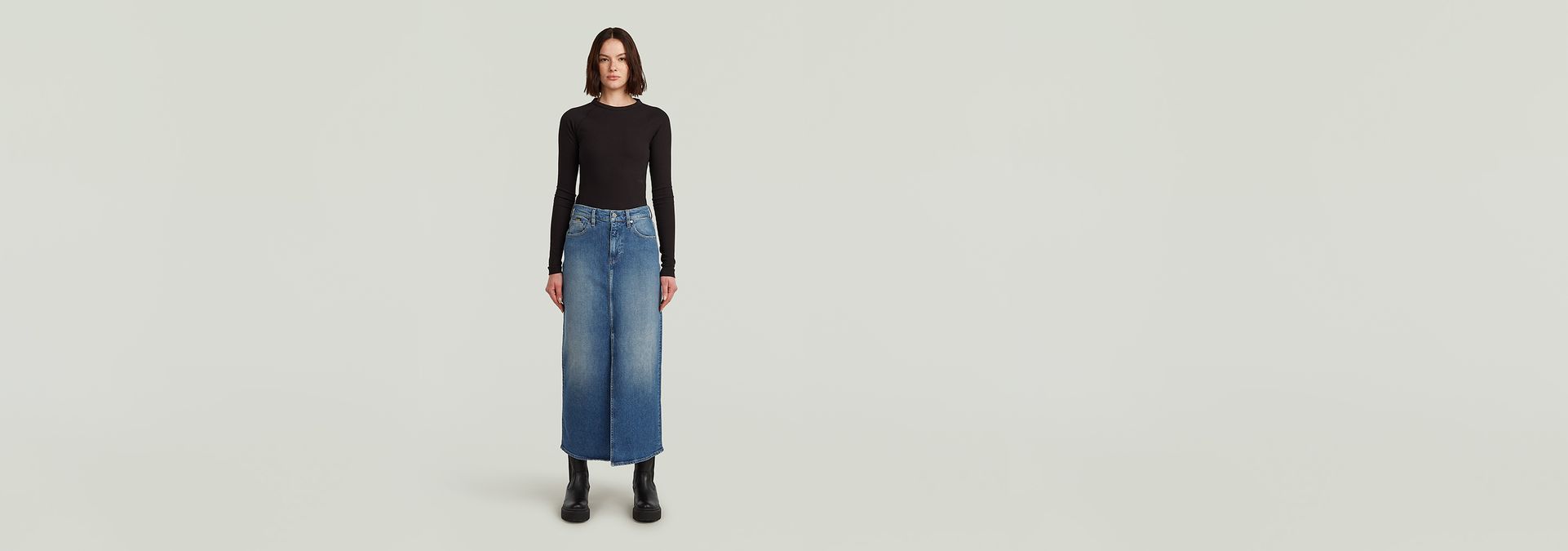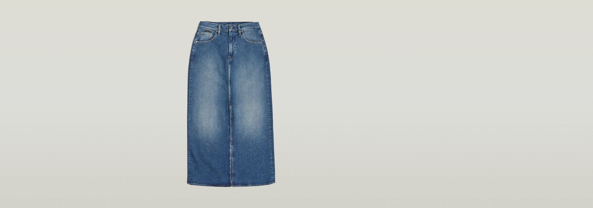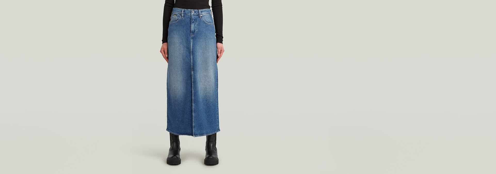 La falda larga Viktoria presenta talle alto y ajuste regular, complementado con cierre de cremallera y botones.