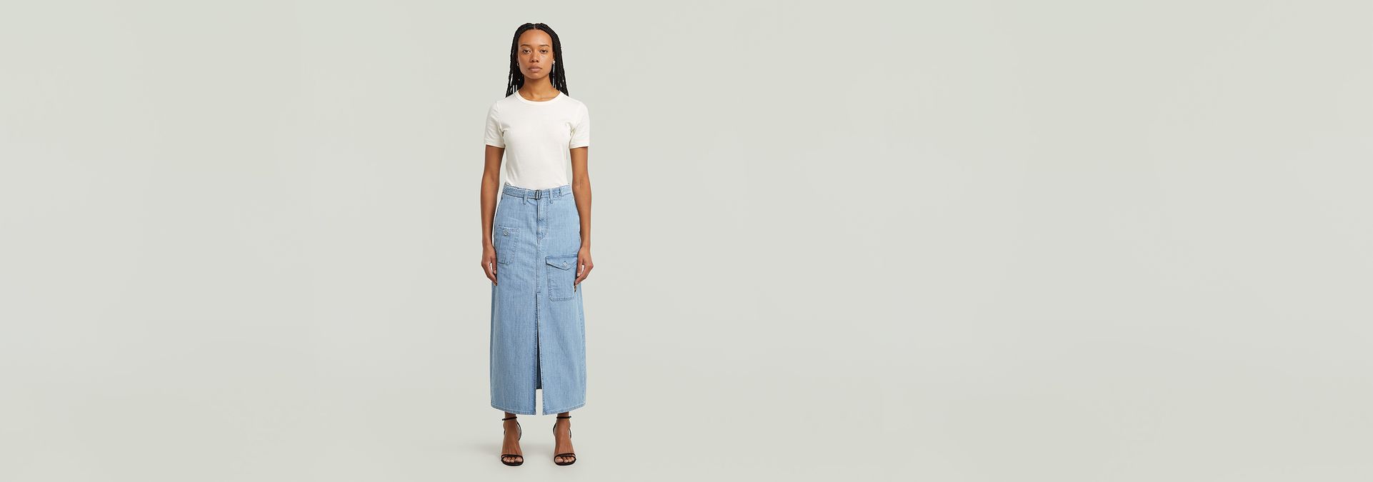 La falda larga Belted Cargo presenta cintura alta y corte regular. Los bolsillos cargo y el cinturón añaden un estilo funcional.