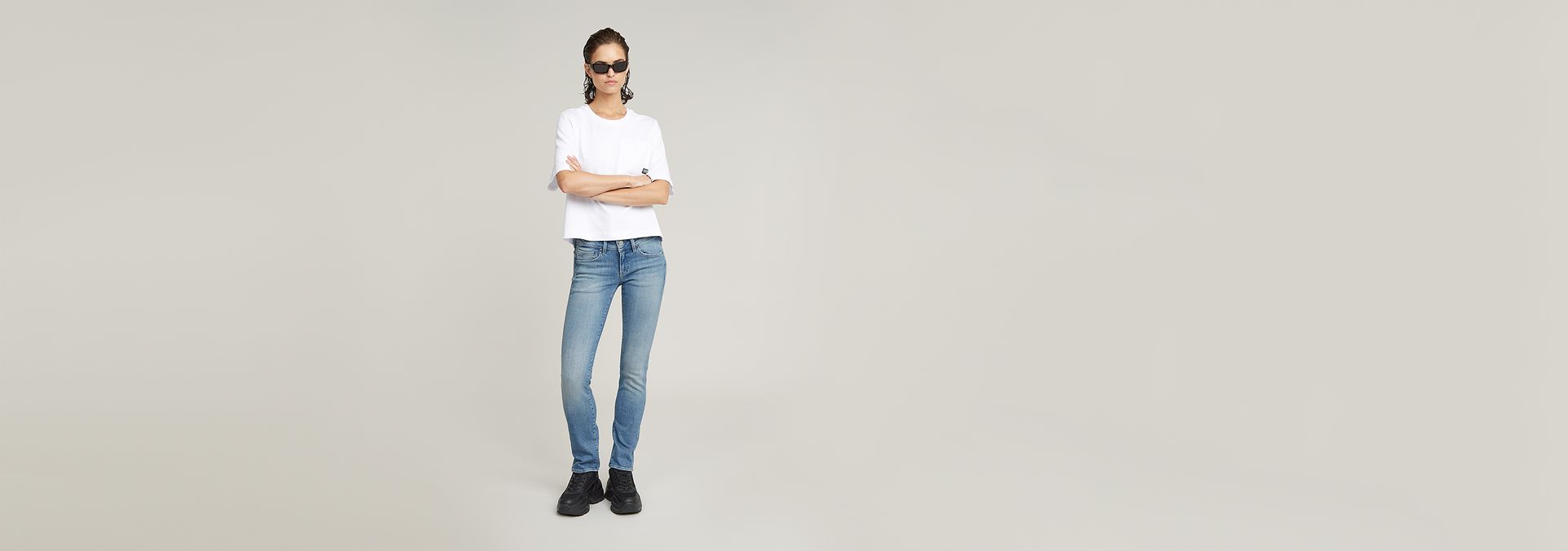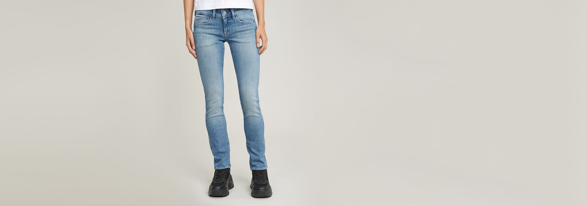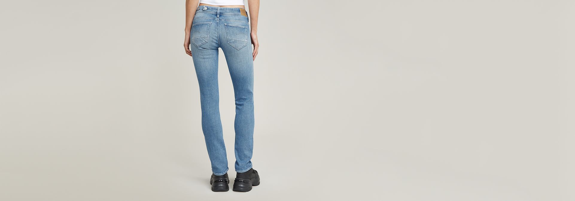 Los Midge Straight son unos jeans ajustados clásicos con cinco bolsillos y una pretina ajustable por detrás de la cintura.