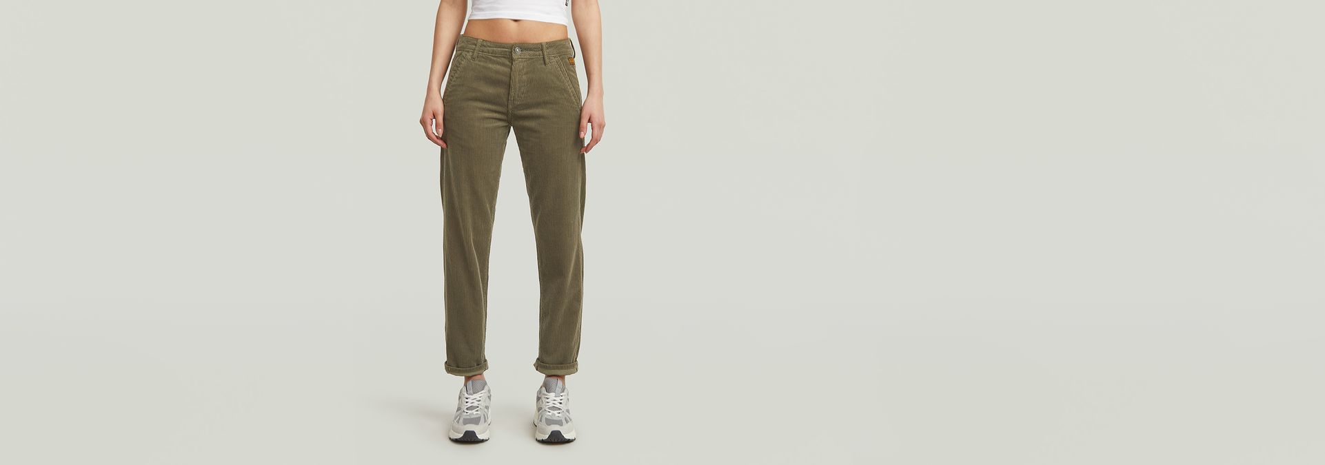 Chino Kate Boyfriend frece un corte relajado con talle bajo. El cierre de cremallera y botones añade un toque clásico.