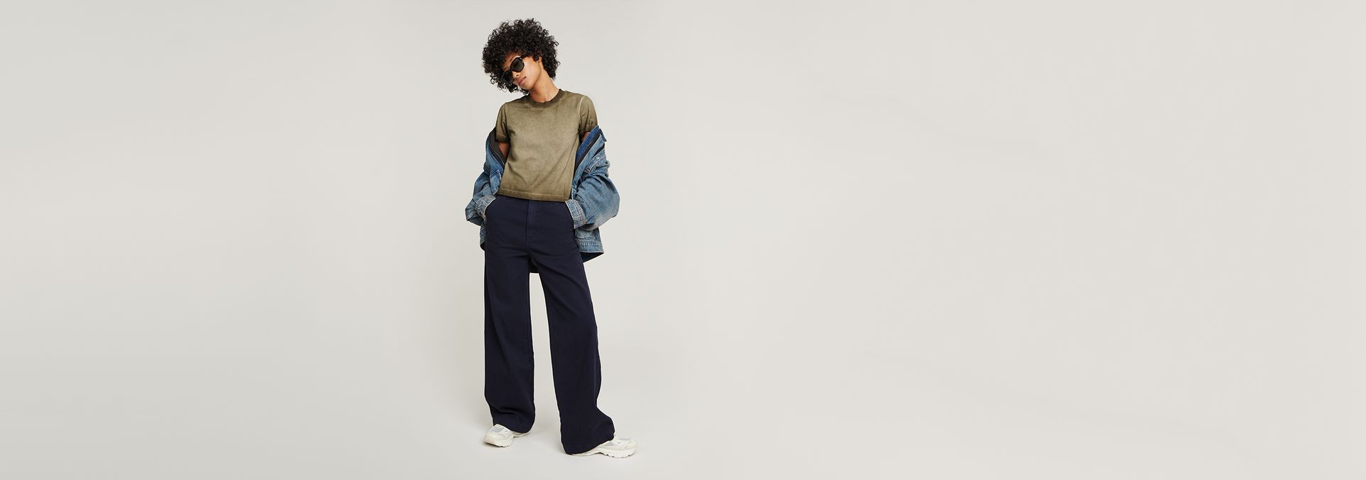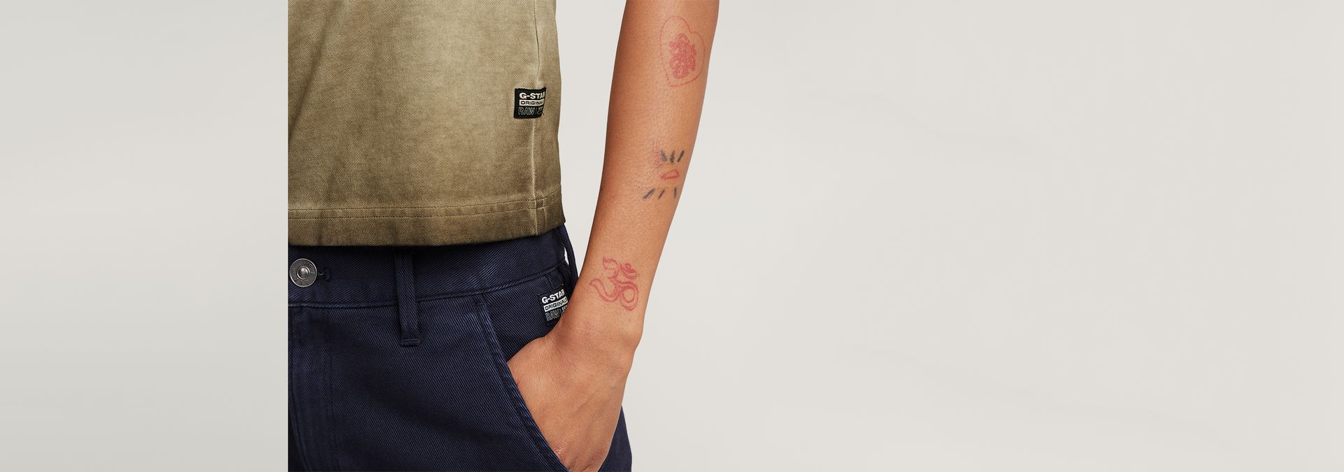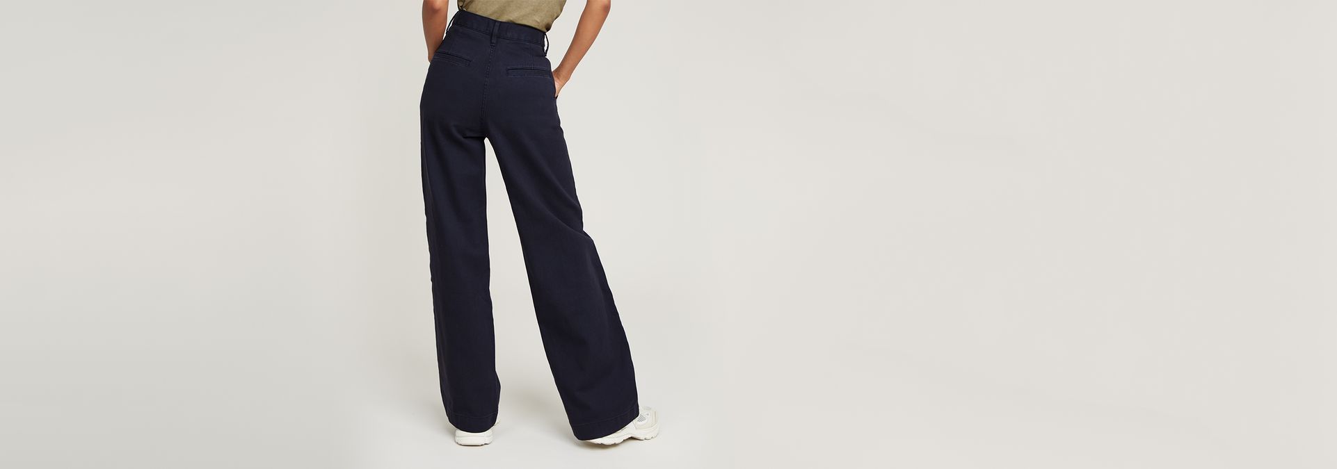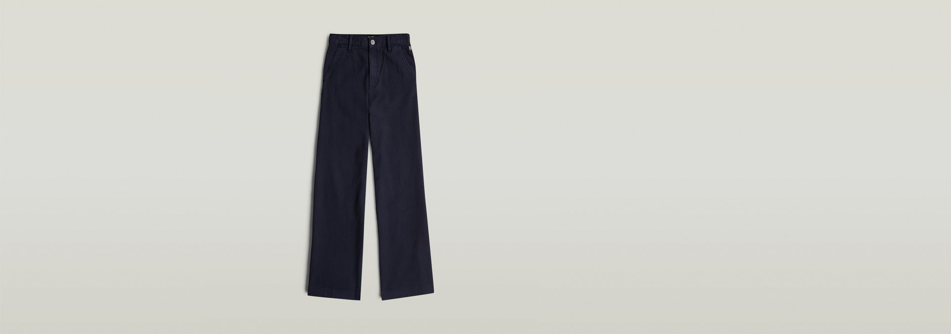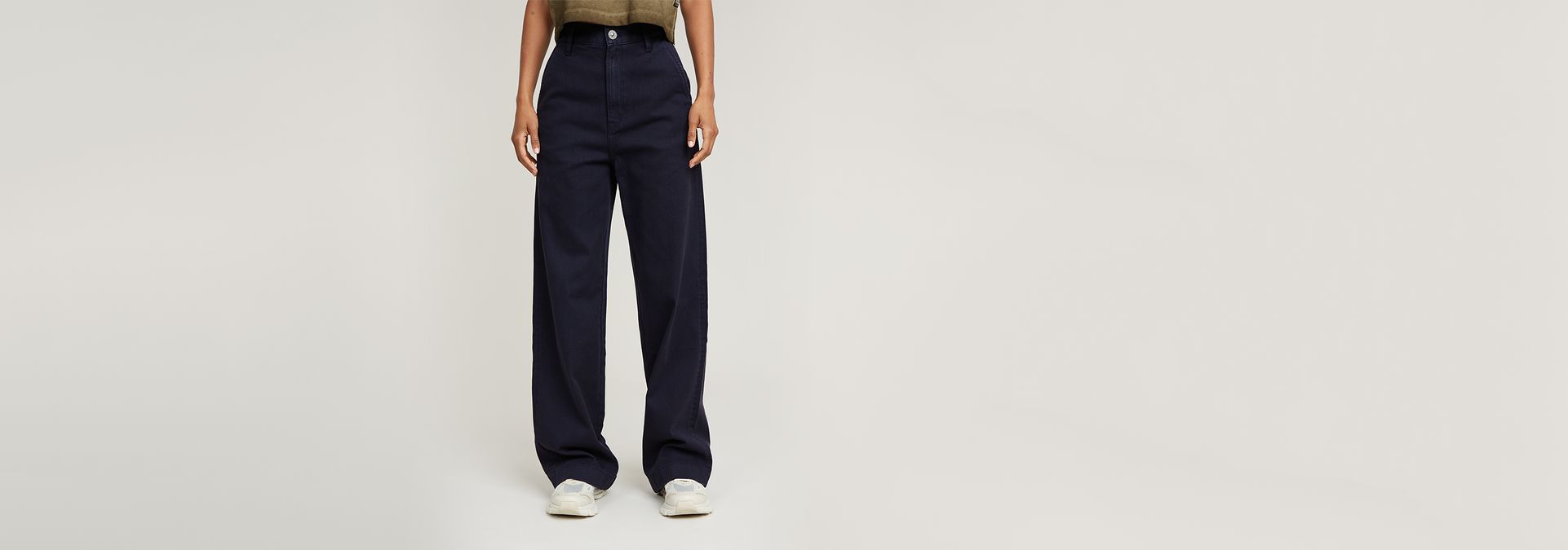 Los pantalones chinos Deck 2.0 lucen un diseño de talle muy alto y corte recto y holgado, con un ajuste ceñido en la cintura y la cadera y un corte más amplio en la pernera. Estos pantalones tienen bolsillos insertados y bolsillos traseros con ribete.
