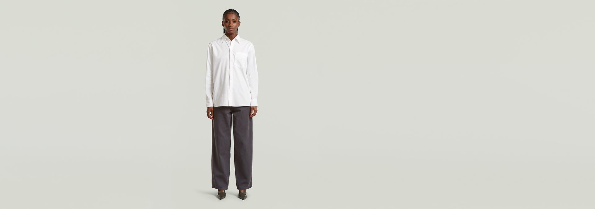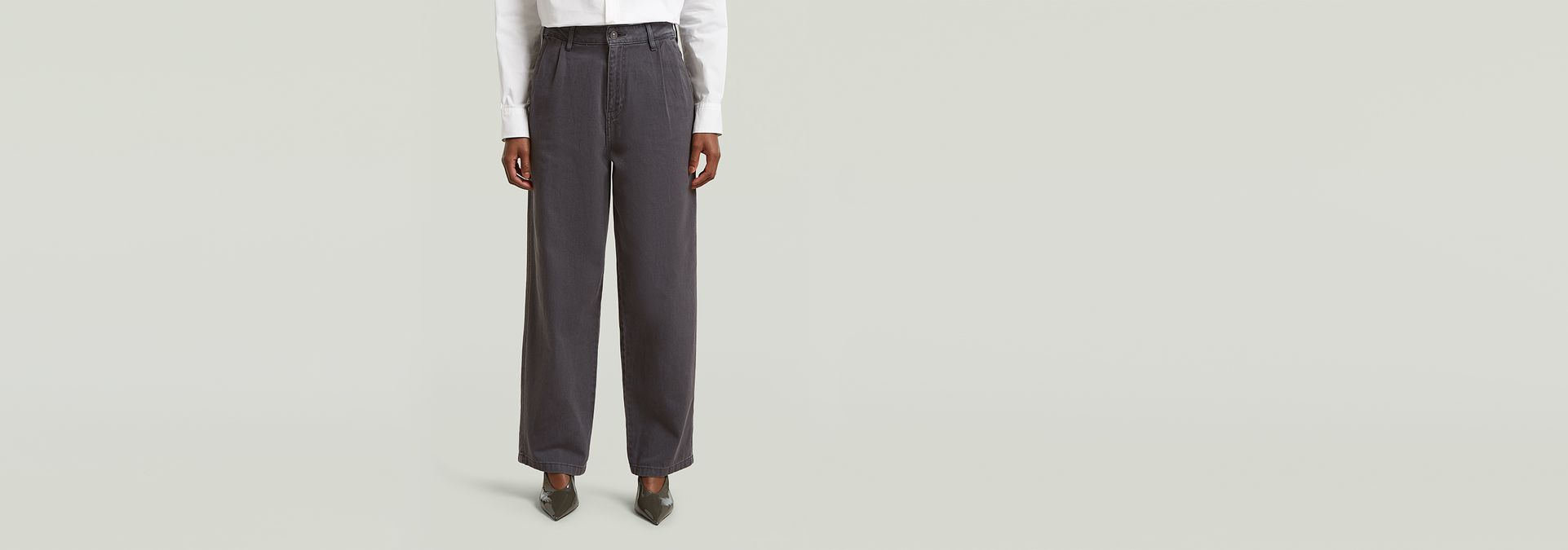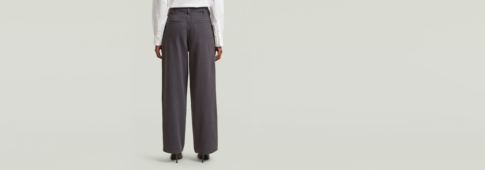 El pantalón ancho plisado ofrece un corte holgado con cintura alta y cierre de cremallera y botones para llevar fácilmente.