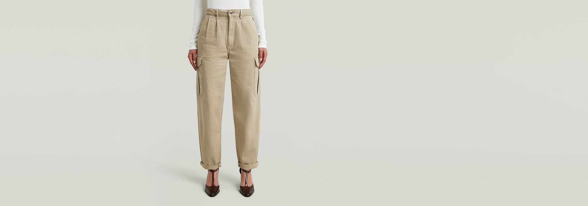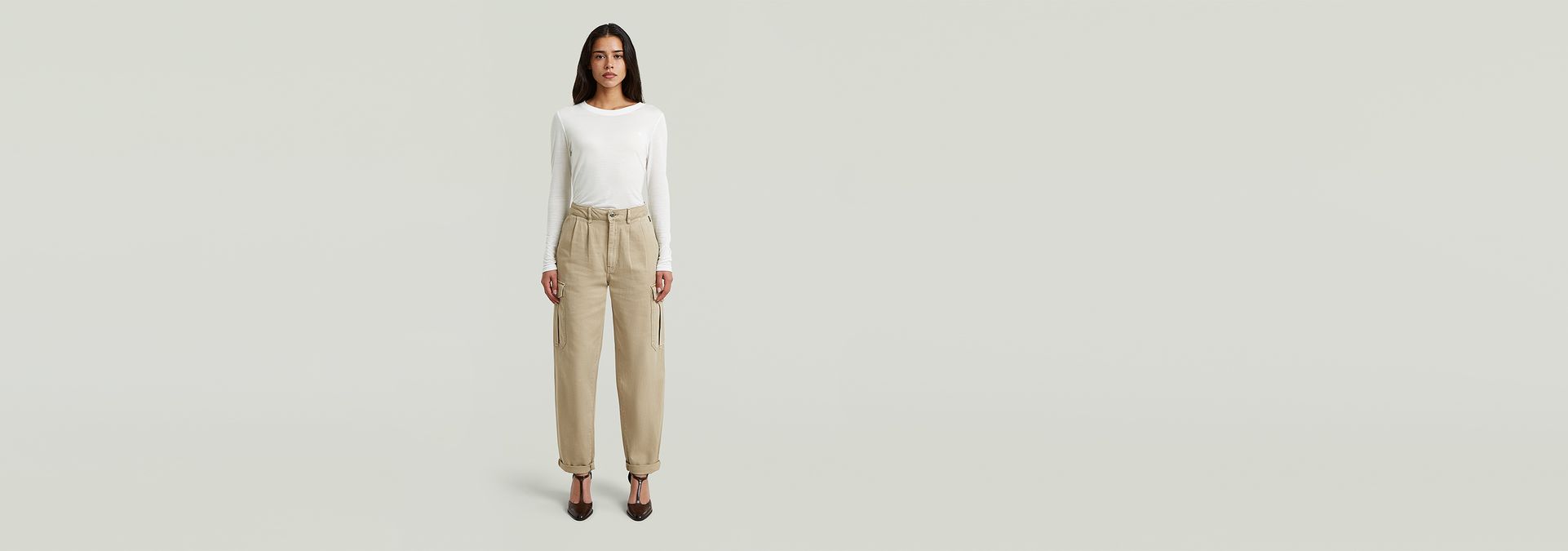 El chino plisado Pleated Tapered Cargo ofrece una cintura alta y un ajuste cónico, perfecto para un aspecto elegante. El cierre de cremallera y botones garantiza un ajuste seguro.