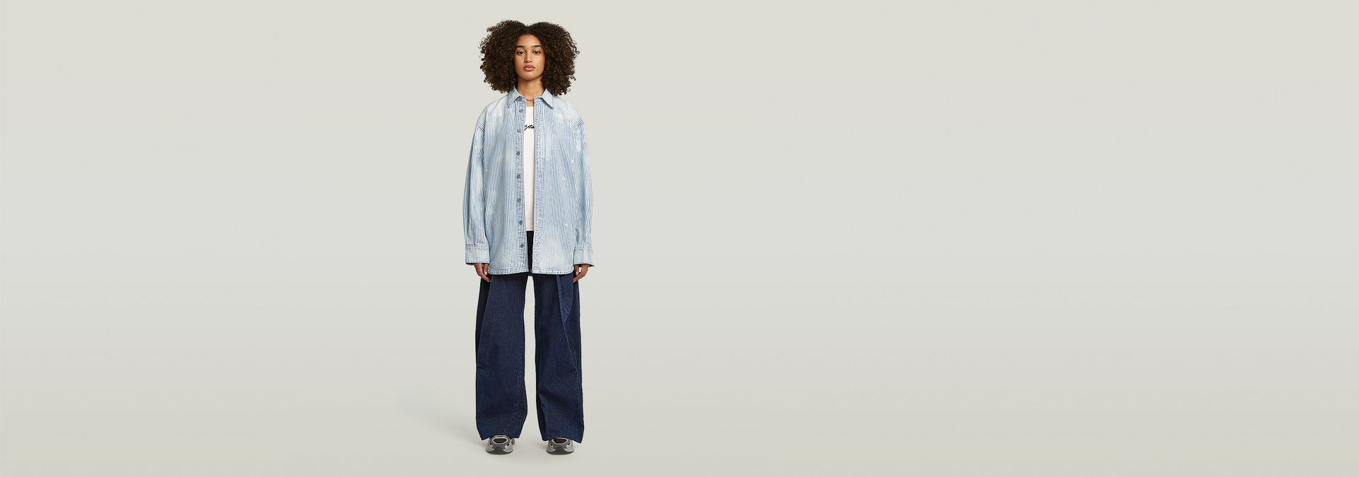 Maxi Overshirt está diseñada con un ajuste extragrande, con un cierre de botones y un cuello de camisa clásico.