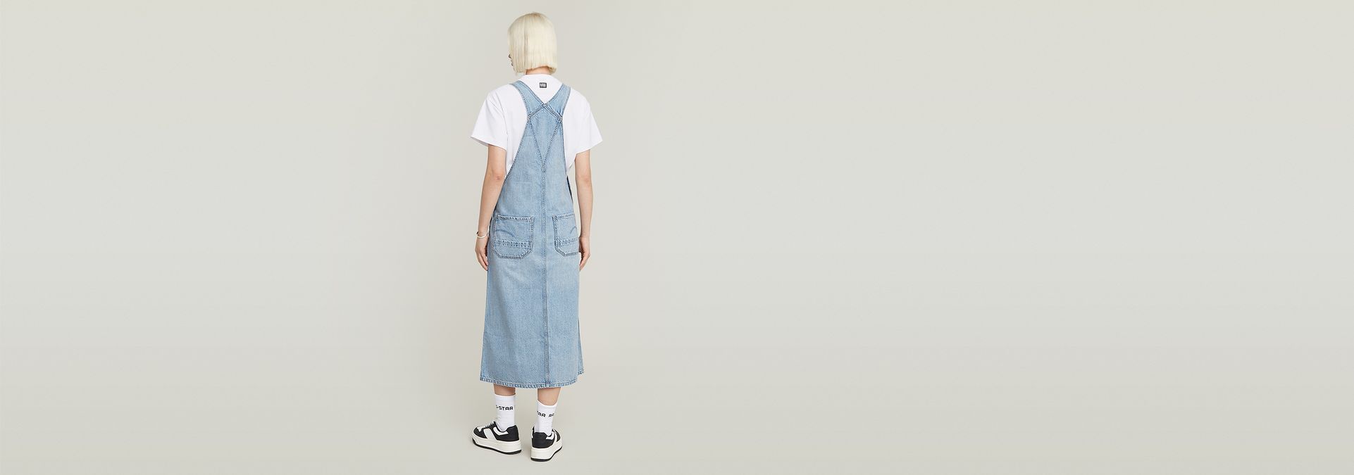 El pichi Midi combina botones sin ojal en el lateral y tirantes que hacen que ponérselo resulte muy fácil. En el canesú, lleva un bolsillo con entrada lateral y otro en el interior. Además de los bolsillos insertados, el vestido también lleva bolsillos en la parte trasera. Luce una abertura tanto por delante como por detrás.