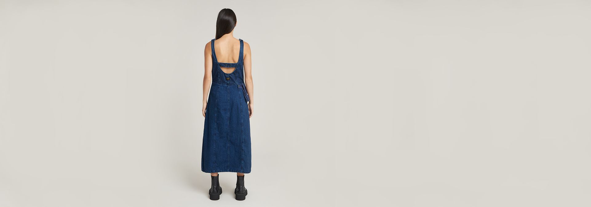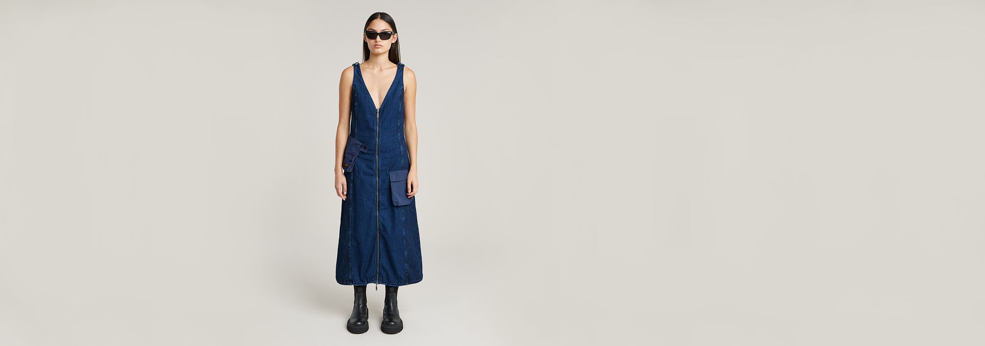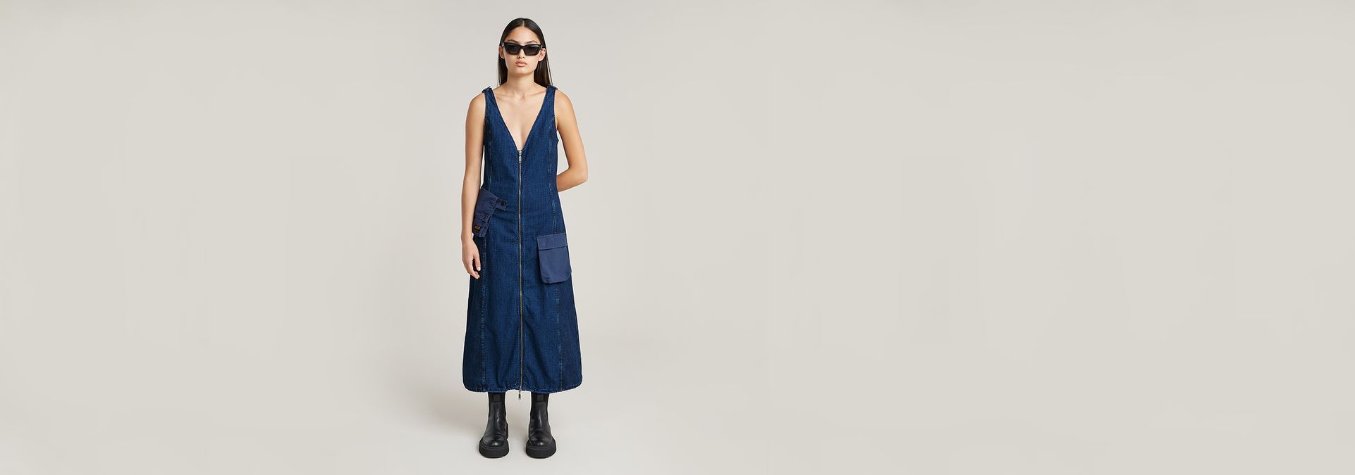 El vestido cargo tiene un corte ajustado y una falda más ancha. Abre el botón de la cremallera para crear una abertura en la parte delantera. El cordón del bajo permite ceñir el bajo y crear más volumen. Bolsillos 3D en la cintura y la cadera. El de la cintura es desmontable. Las lengüetas en los hombros rematan el modelo.
