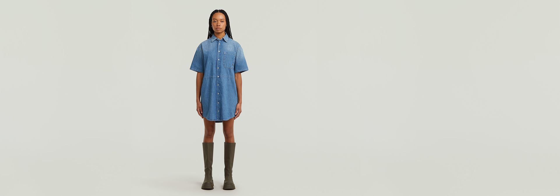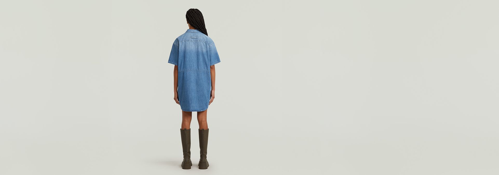 El vestido denim Relaxed Drawcord luce un corte holgado. Usa el cordón ajustable para darle forma a la cintura o déjalo suelo para un toque más relajado. Este vestido abotonado lleva un bolsillo en el pecho y bolsillos adicionales en las costuras laterales. Tiene mangas cortas ligeramente más largas de lo habitual.
