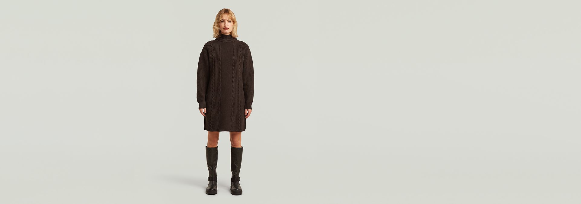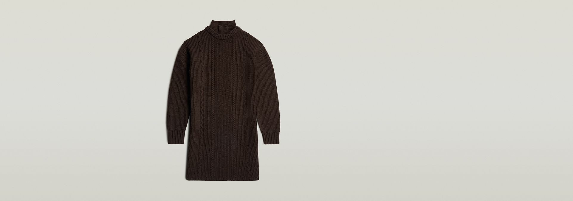 El vestido de punto Cable Loose tiene un corte relajado con cuello redondo y manga larga, perfecto para un look casual y elegante.