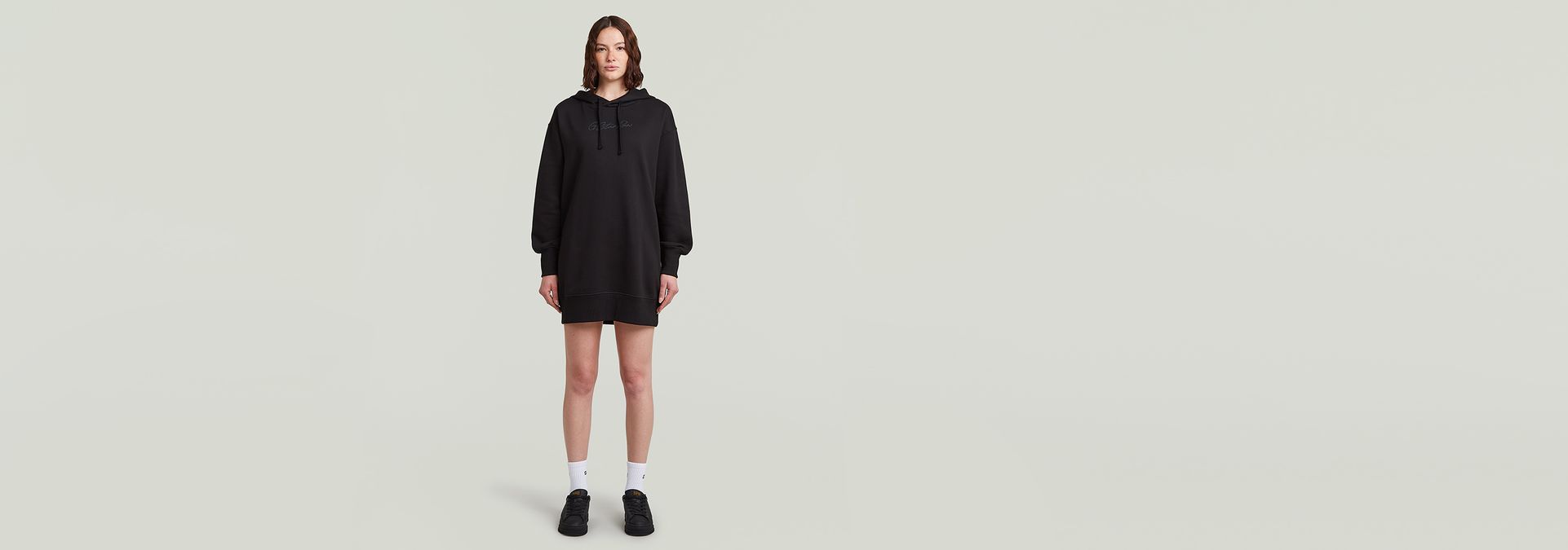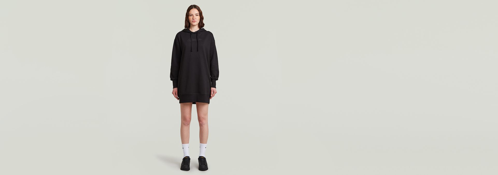 El vestido de punto ofrece un corte relajado con un diseño con capucha, perfecto para llevar de forma informal.